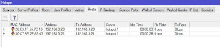 Gambar diatas menunjukan idle time mulai berjalan selama 35 detik, dan jika klien tersebut sampai di 5 menit dan aktivitas nya masih 0 bps , maka akan terhapus otomatis di tabel host.